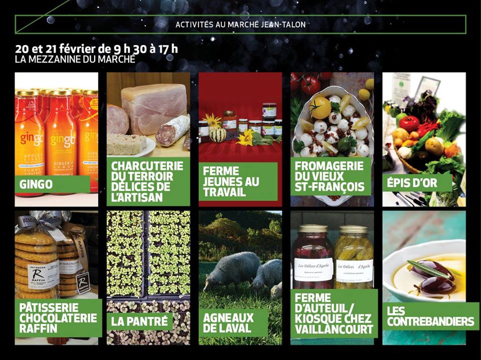 Laval se déplace également à la mezzanine du marché Jean-Talon, où producteurs et transformateurs spécialisés donneront rendez-vous aux foodies et aux curieux les samedi 20 et dimanche 21 février de 9h30 à 17h. Une occasion de déguster les produits de 10 bonnes adresses lavalloises, dont : GINGO (breuvages naturels à base de gingembre), la fromagerie du Vieux St-François, La Pantré (spécialisée dans les plants de fines herbes et légumes biologiques), Les Contrebandiers (huile d’olive biologique, coulis balsamique et vins) et d’assister à des ateliers animés par Jean-Paul Grappe, chef-conseil du festival, ainsi que 9 maîtres de cuisine de la région invitée.
